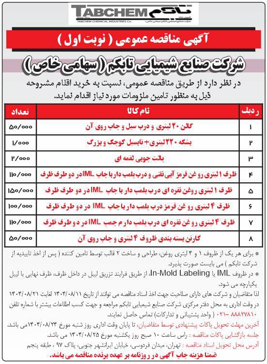 مناقصات مناقصه خرید ظروف ، گالن، بشکه، کارتن ارسال شده توسط reza نوامبر 1, 2025 در نوامبر 1, 2025 0 مناقصه خرید ظروف ، گالن، بشکه، کارتن