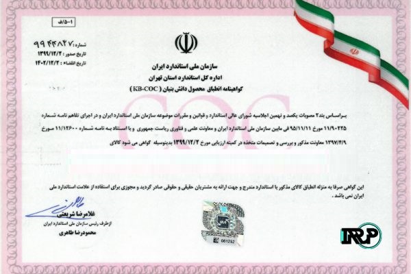 دارای استانداردهای ملی از سازمان استاندارد ایران